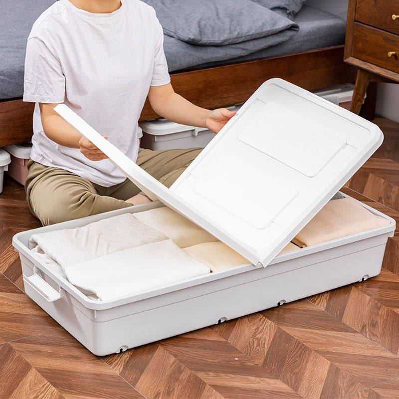 収納ボックス特大サイズプラスチックフラット超薄型カバー付き大容量収納ボックスベッド下プーリー整理ボックス