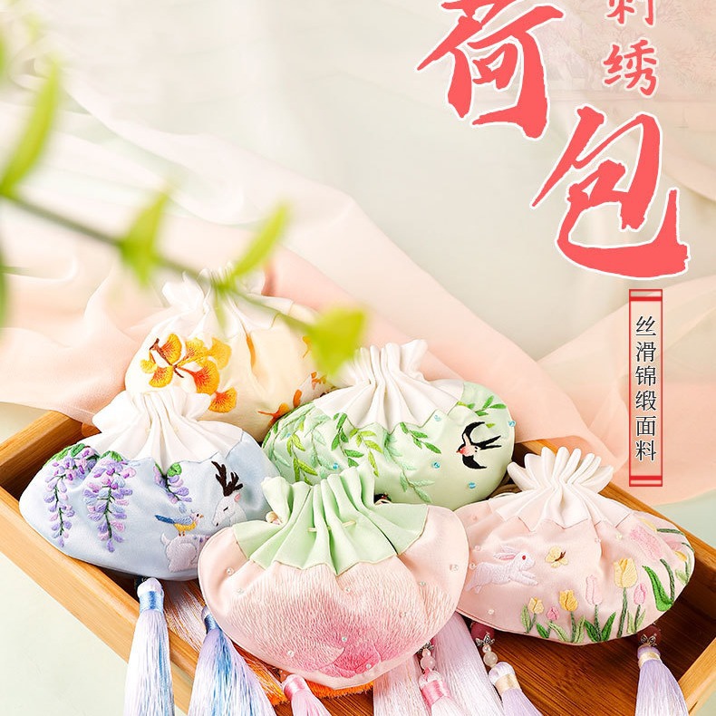 国境を越えた有名なスタイルのゴールドバッグ diy 小銭入れ手作り刺繍素材バッグ初心者蘇刺繍大人の小さなバッグ
