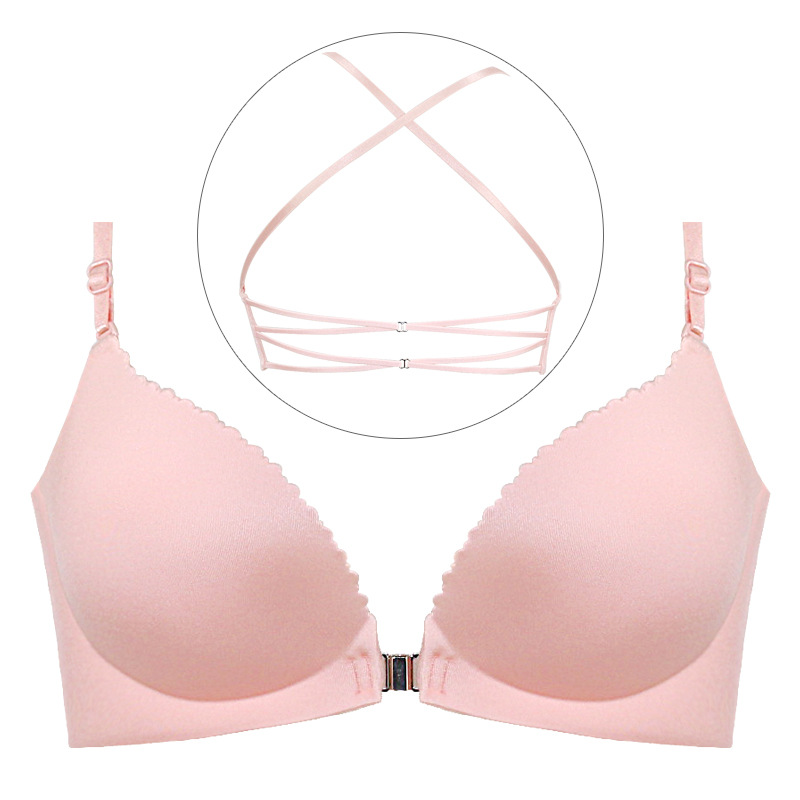 春夏の新型ビッグサイズ超薄型モデル無痕無鋼輪前ボタン文ブラジャー女性が集まって調整型美背下着