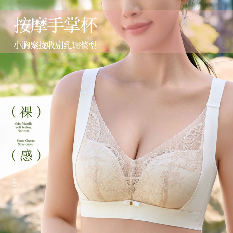春夏新品スチールリングなしブラジャー非磁気収副乳減圧集約調整セクシーな薄いカップ下着の上にブラジャーを置きます。