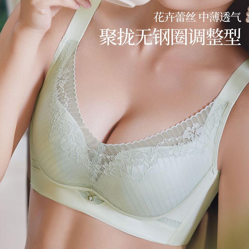 25新型快適レース無鋼輪女性ブラジャー調整型ポリ通気性薄いセクシー下着垂れ下がり防止
