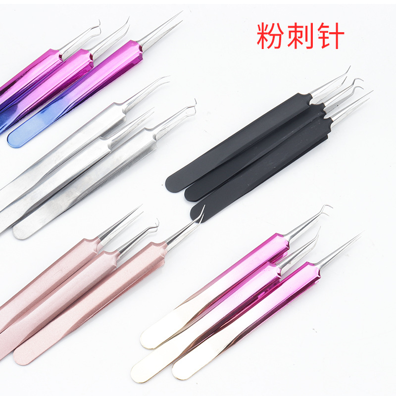 卸売りステンレス粉刺針美容化粧黒頭ピンセット多色美容院用粉刺針