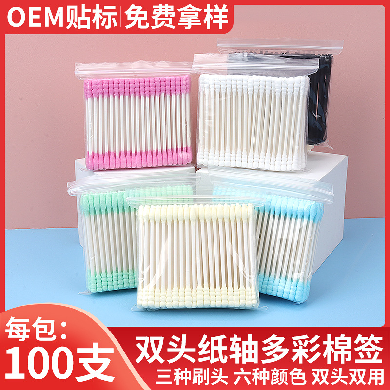 卸売り多目的カラー二重袋入り綿棒使い捨て化粧カラー綿棒100本/バッグ