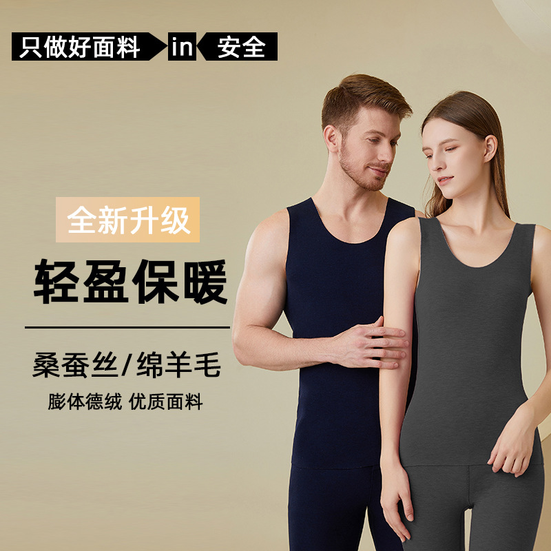 330g両面磨毛徳絨毛無痕ウールシルク発熱保温ベスト女性ベルベット底l413