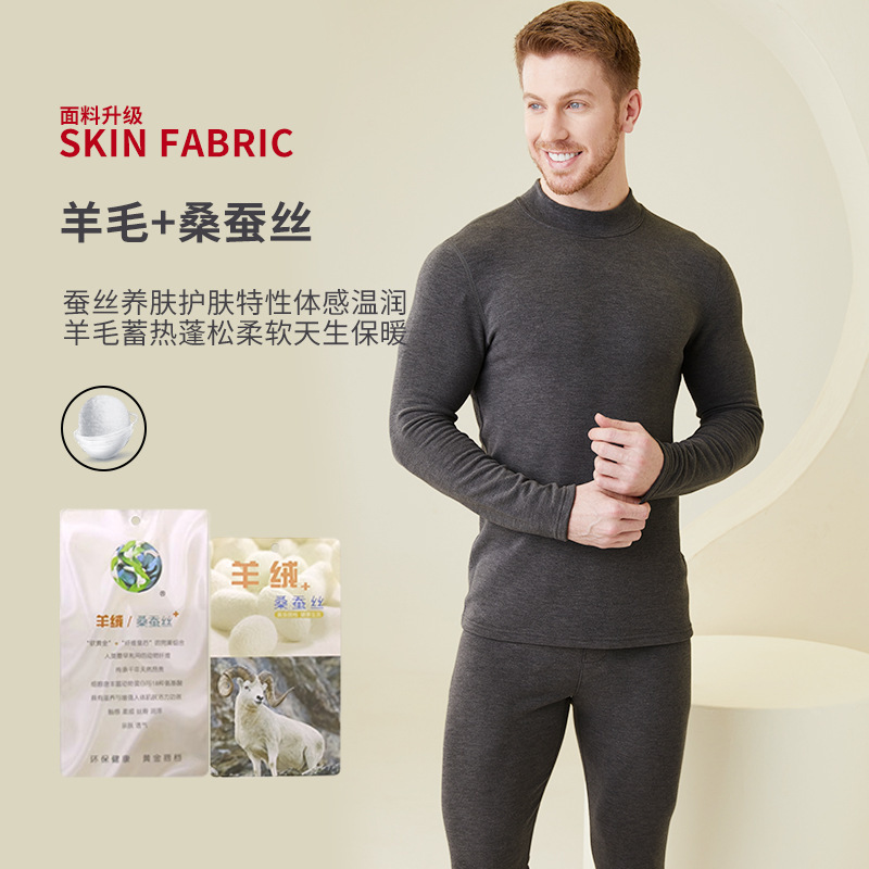 330gウールシルク徳絨男型半高襟長袖保温恒温秋衣n238