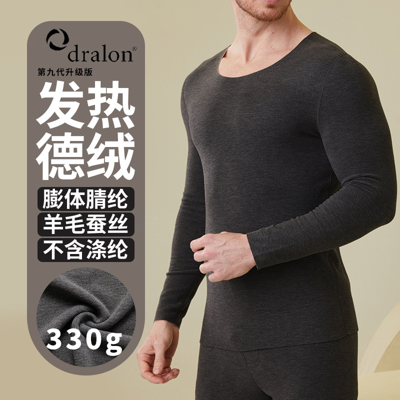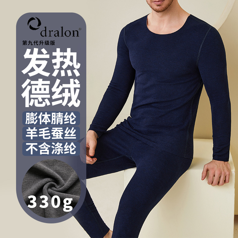 330g秋冬新ウールシルク膨体徳絨毛男金気ままに丸襟長袖保温スーツZ249
