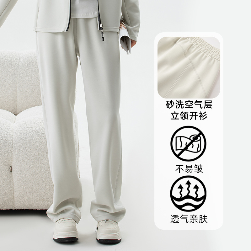 砂洗空気層生地が腰を緩めてひもを引くカジュアルパンツのサイドポケットのストレートパンツL571が痩せている
