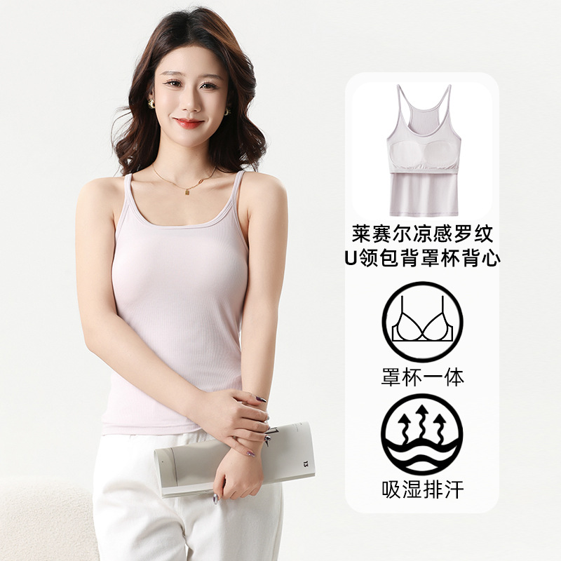 ライゼル涼感リブUネック女性カップバッグバックキャミソールベストインナートップスL882