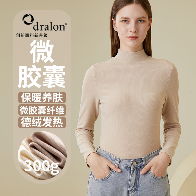 300g 2*2ねじ徳パイルはマイクロカプセルを含んでいる女性の半高襟長袖発熱保温シャツL255