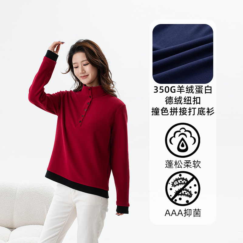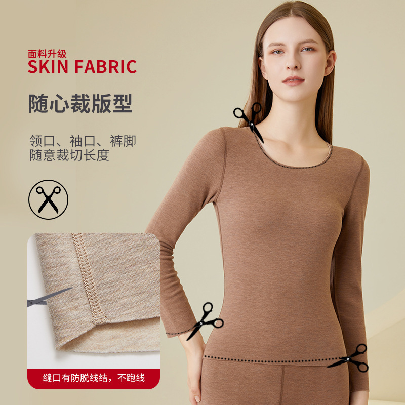 330gウールシルク膨体徳絨毛の女性モデルは、丸首長袖保温発熱シャツセットl425