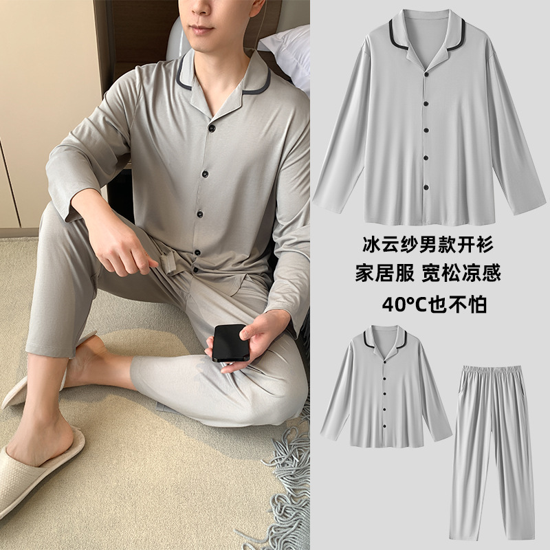 氷雲紗男性ホーム服カーディガン男性長袖ゆるいカジュアルパジャマセットZ145快適