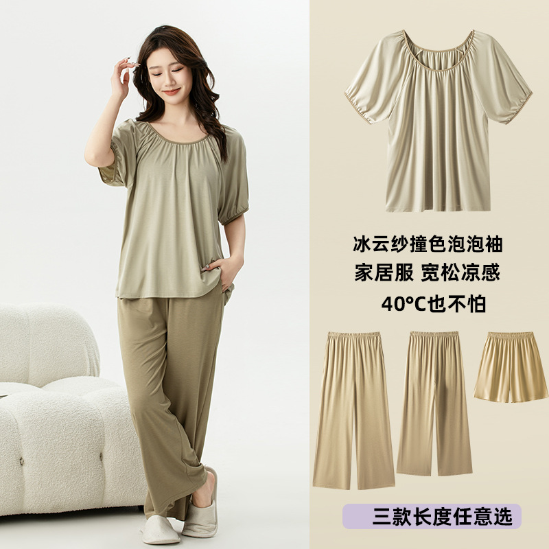 氷雲紗婦人衝突色泡袖家庭セットゆるい丸首カジュアルパジャマ快適家庭服L876