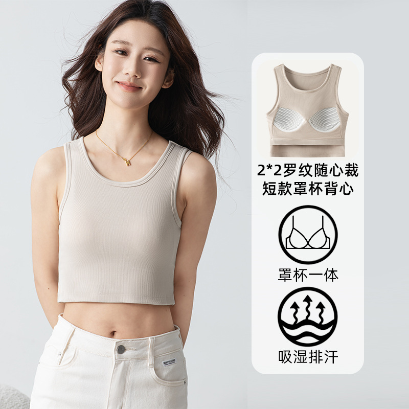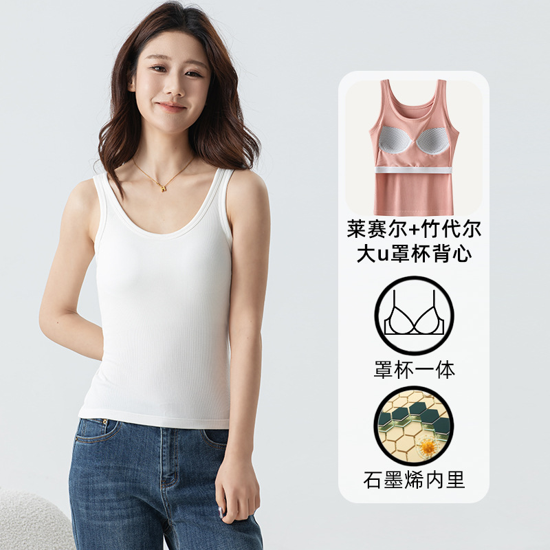 春夏モデル竹綿2*2レディースモデル大Uネックカップ一体キャミソールファッション百合快適uネックLL847