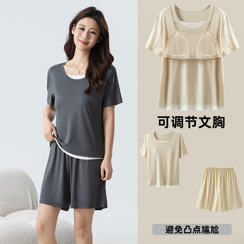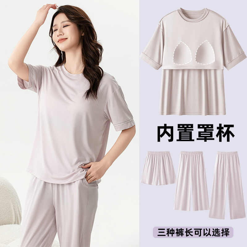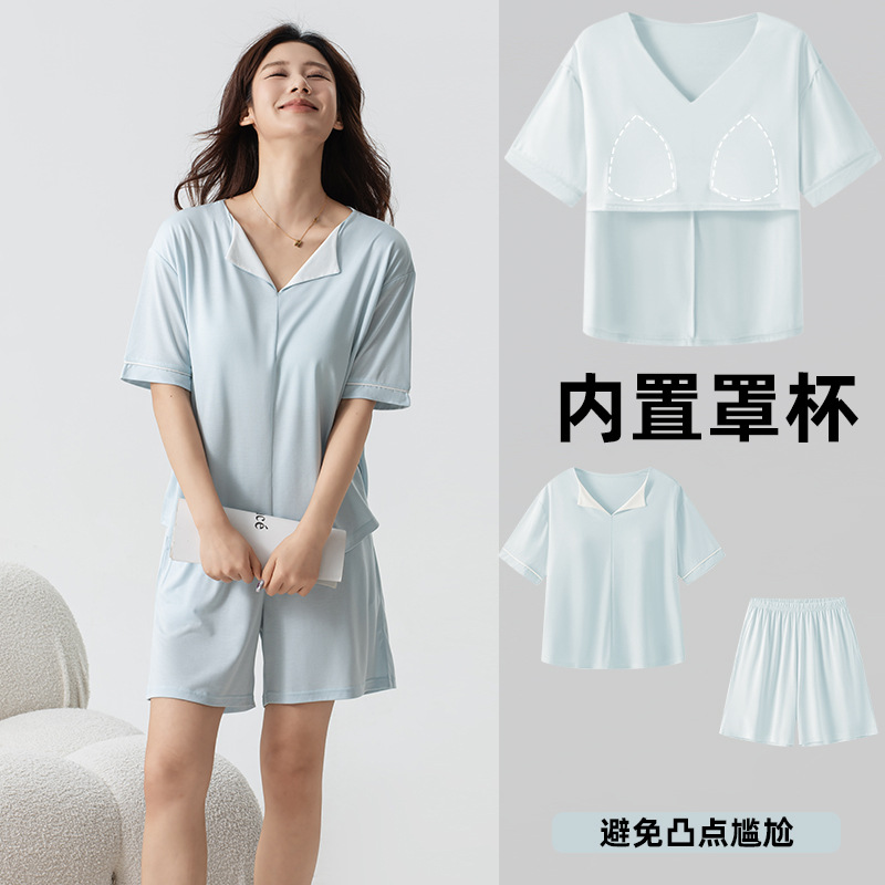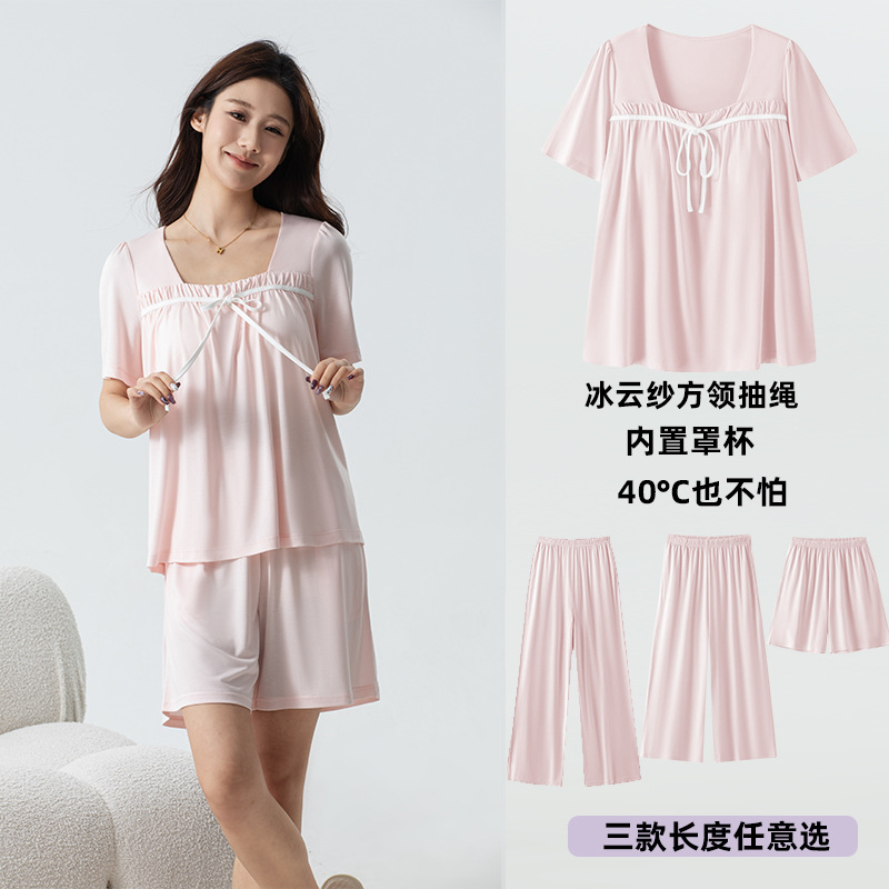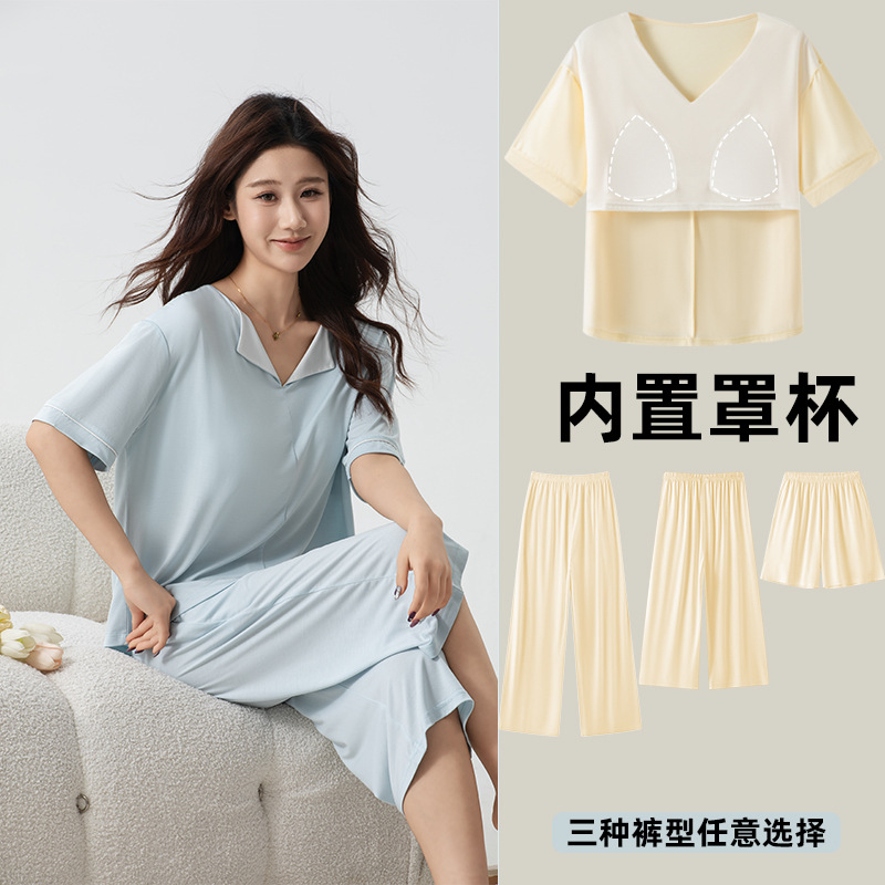 氷雲紗vネックカラーカップ一体家庭服薄いパジャマ外着セットZ150Z138Z156