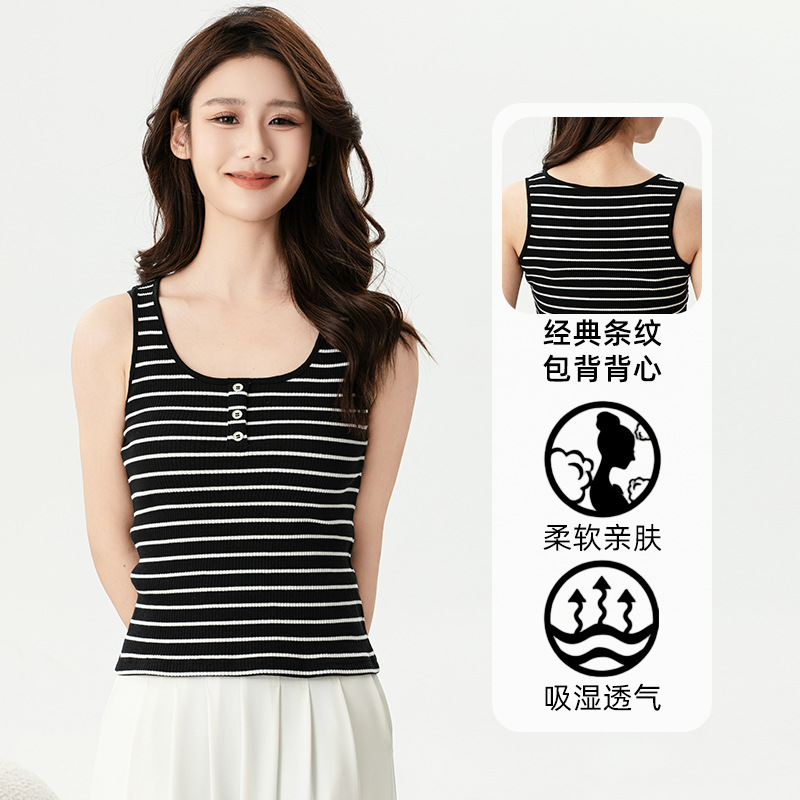 女性の古典的なストライプの丸首の袖なしのバックベストは柔らかい肌に優しいです。