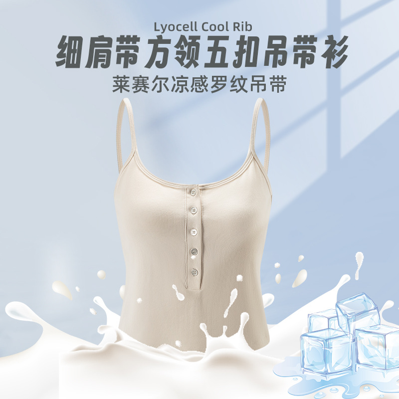 夏の新型ライゼルの細い肩ベルトの四角の襟の5ボタンの装飾のカップの一体のキャミソールの女性L870