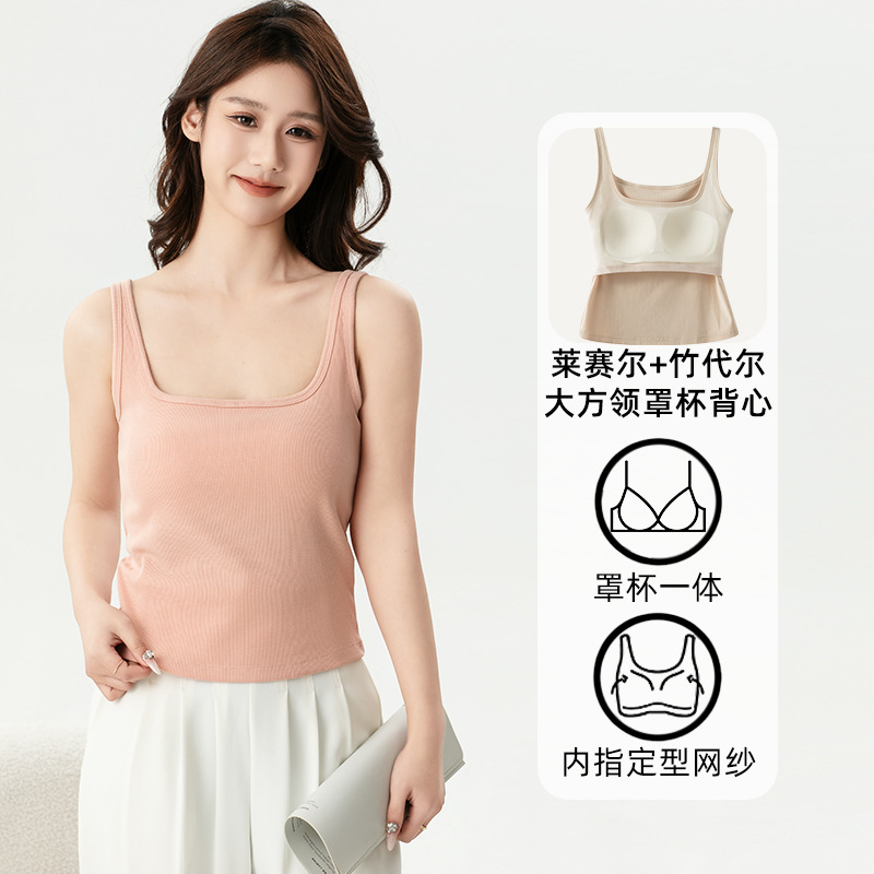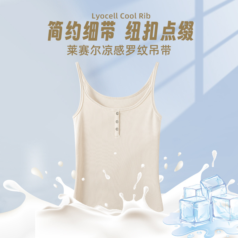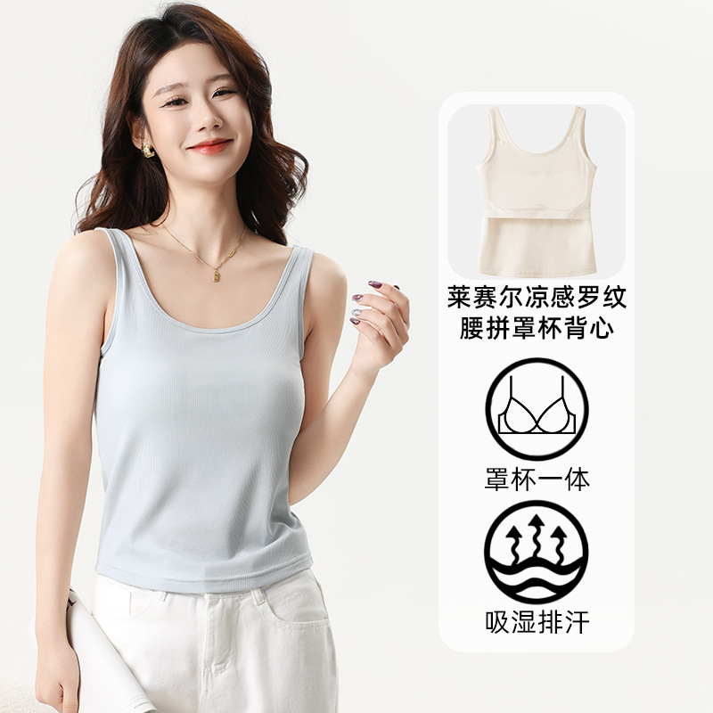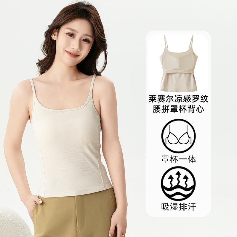 ライゼル涼感リブ側腰斜め縫いカバーカップ一体キャミソール女性は痩せています。