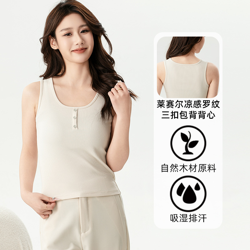 ライゼル涼感リブ三ボタンデザインノースリーブベスト夏着通気吸汗自在性L872