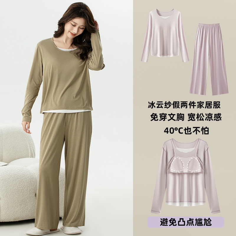 氷雲紗材質パジャマ女性用固定カップ偽の裾に丸みを帯びた家庭服L869
