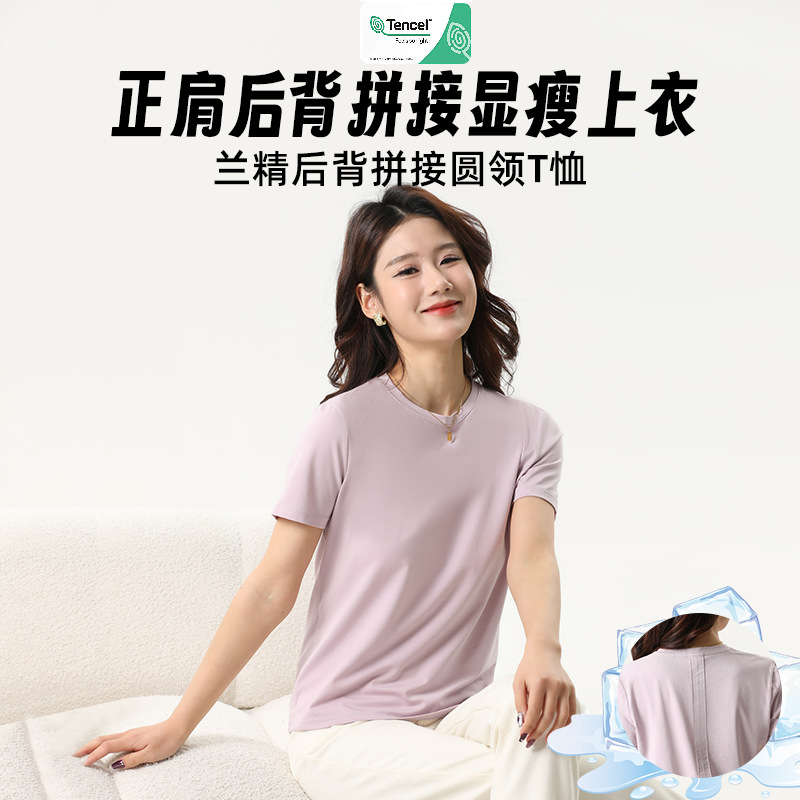 蘭精モーデールの背中に丸首tシャツの女性のシンプルなカジュアルファッション半袖上着jy766