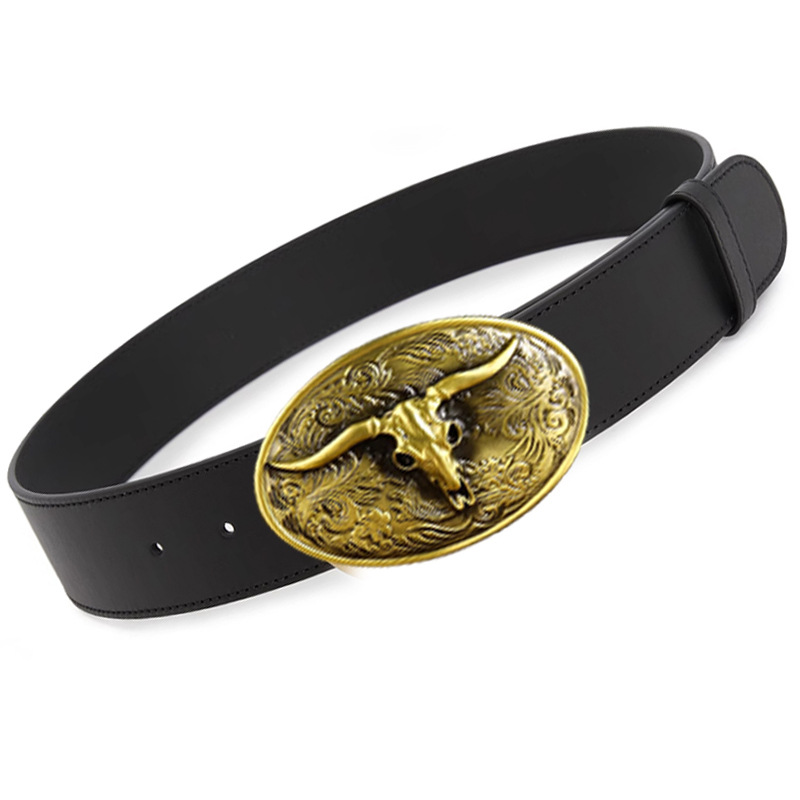 アマゾンクロスボーダー牛ヘッド合金バックルベルトゴールド滑らかバックルプリクラ個性ベルトアクセサリーベルト装飾品