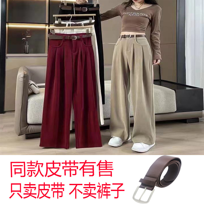 現物のベルトの卸売りの女性はカジュアルなズボンのベルトの針を合わせてワイドなレギンスのズボンを掛けます。