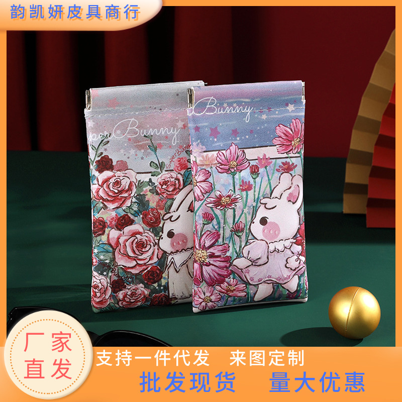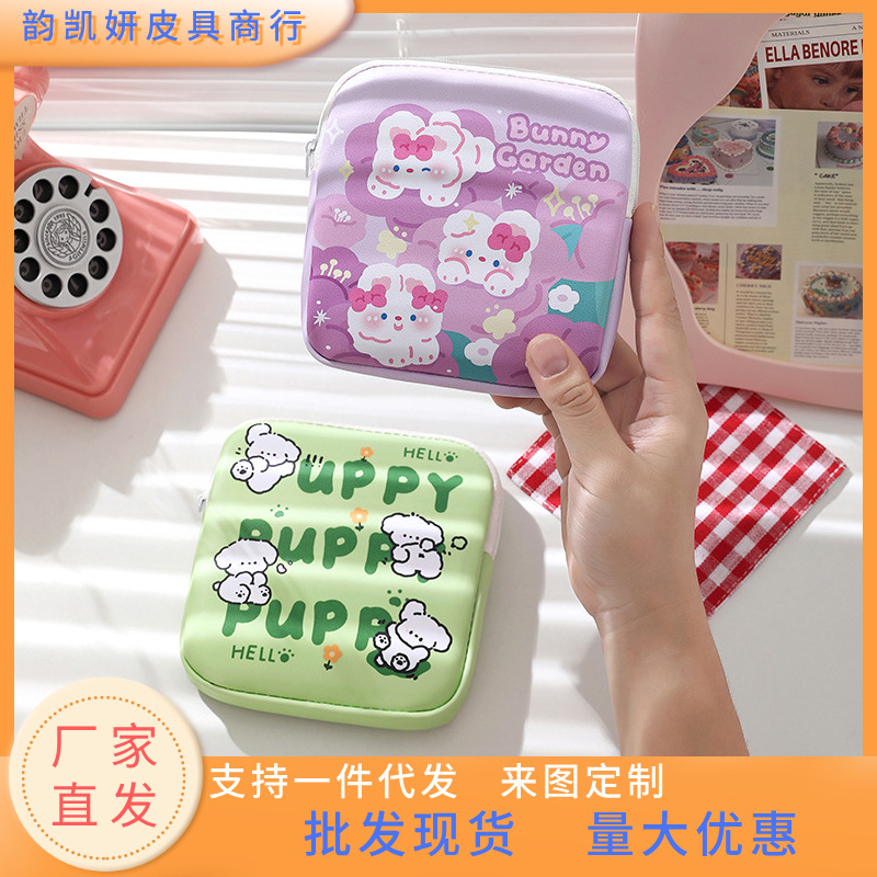新しい女性の漫画のかわいい多用途の生理用ナプキンのおばさんのタオルの収納袋の大容量の口紅の耳の線は身につけて小さいです。