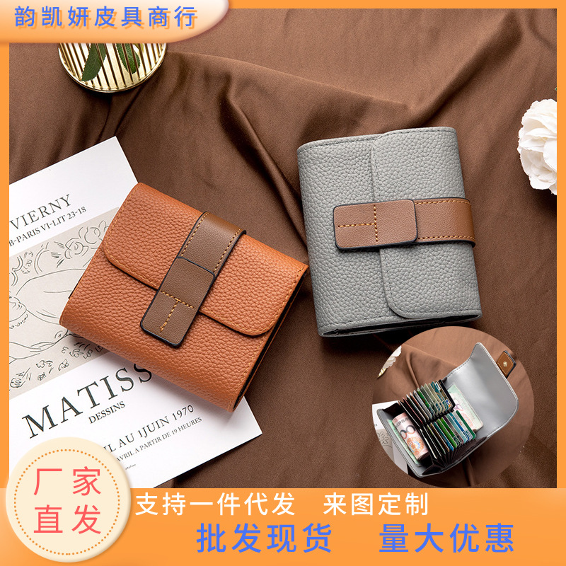 メーカー直売のシンプルな薄いカードの女性の精緻な皮質の小さい多カードの位置の軽い豪華な小さい大衆の財布の多機能