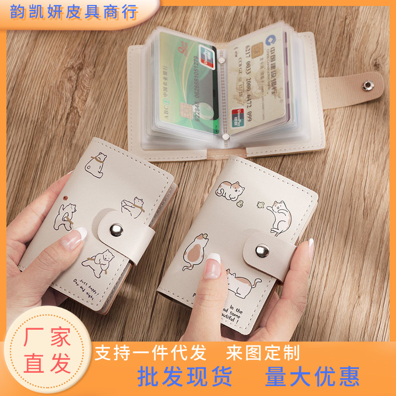 メーカー直販の簡単なペンの子猫のかわいい創意カードの包みの小さい証明書の包みの大容量の多カードの位置のカードは女性を挟みます。