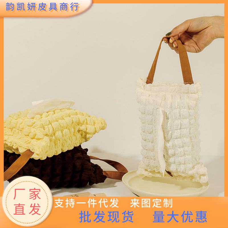 メーカー卸売ソフトクリームパフ綿シアサッカーティッシュボックス二層生地ティッシュバッグライト高級デスクトップ収納