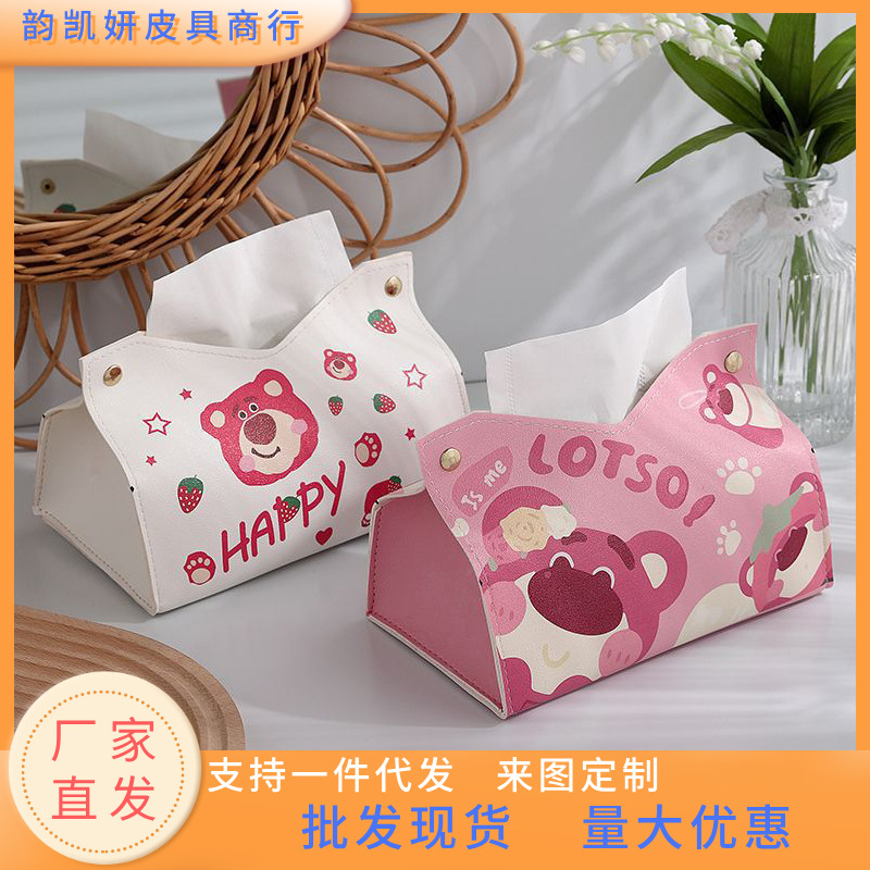 かわいいいちご熊アニメ革ティッシュケース少女心皮質軟面家庭用ティッシュケース化粧品収納ケース