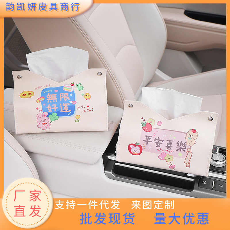 車載ティッシュケースアニメかわいい自動車ティッシュケース吊り式ナプキン用クリエイティブ手すり箱ティッシュ袋