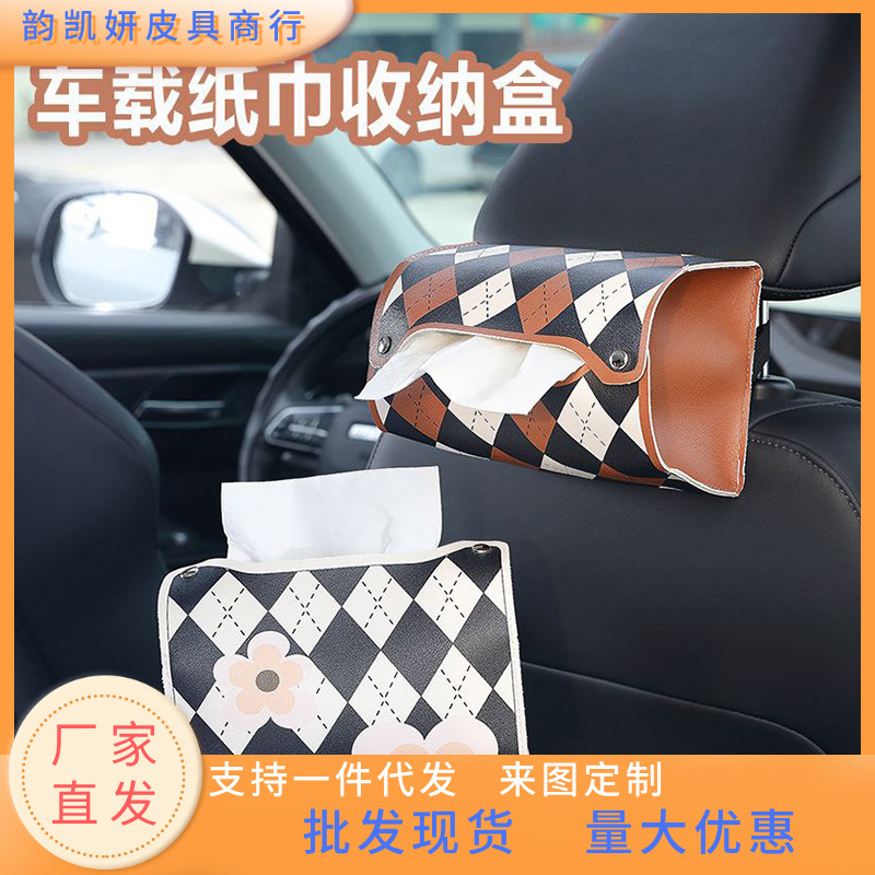 菱形格車載ティッシュケース高級感自動車収納引き出し紙箱背もたれアームレスト車内小物収納