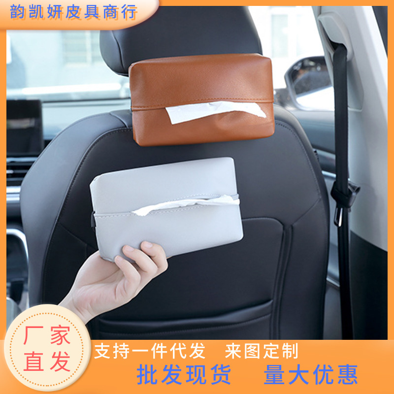 高級感のある純色の革の車載ティッシュは個性的なストラップを持っています。
