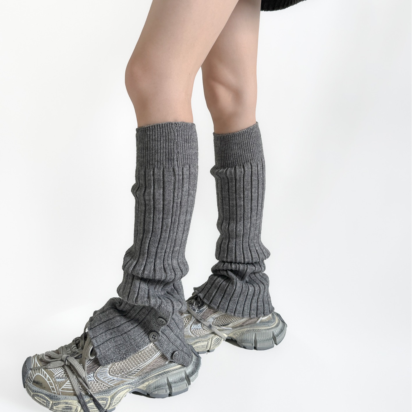 秋冬ボタングレーニットストッキングアメリカ保温カジュアル毛糸脚カバー