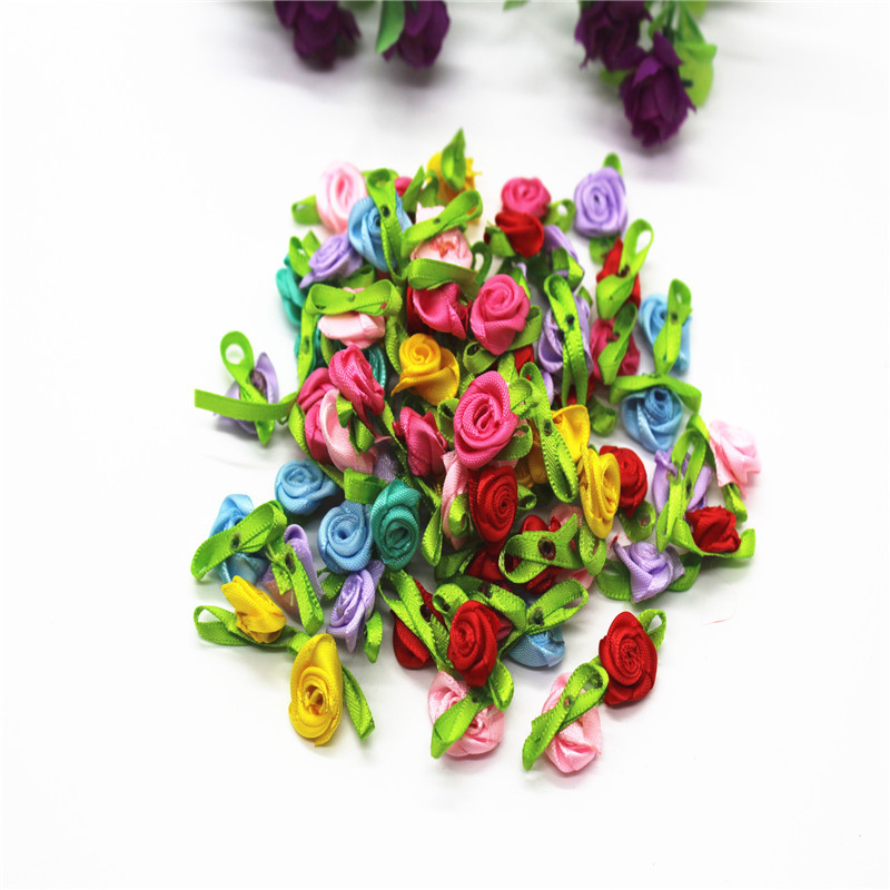 中号の小さい花の布芸の蝶結びの子供の手作りの髪飾りdiy材料の布芸のバラの髪はアクセサリーの部品を挟みます。