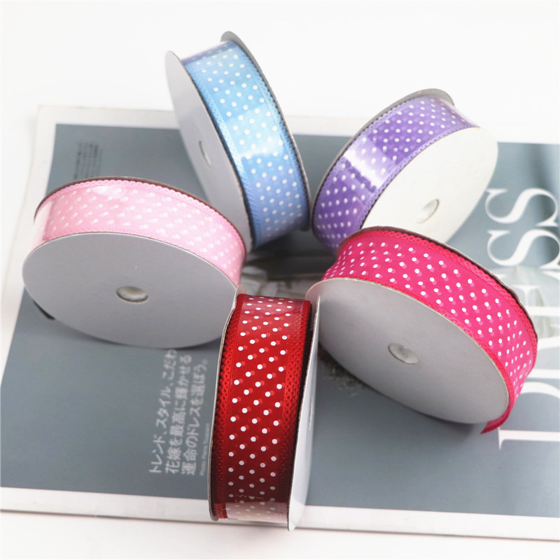 2.5センチの丸い点の雪のガーゼの折り畳みの蝶結びの頭飾りの材料のギフトボックスの包装のリボンの子供の髪飾りのdiyの部品