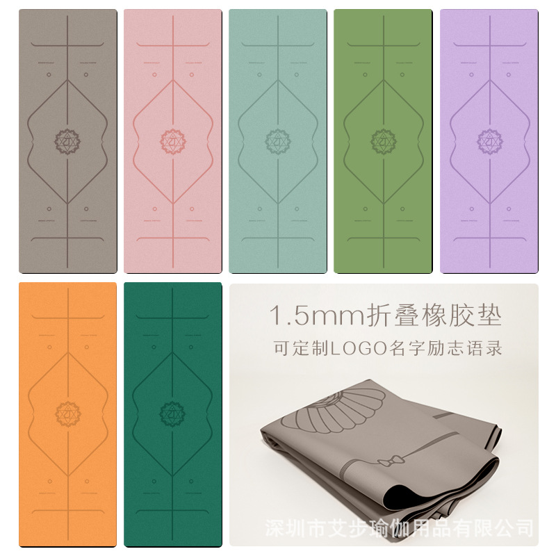 1.5mm定-製logo折り畳みヨガマット天然ゴム滑り止め専門の薄いタイプの携帯家庭用フィットネスマット