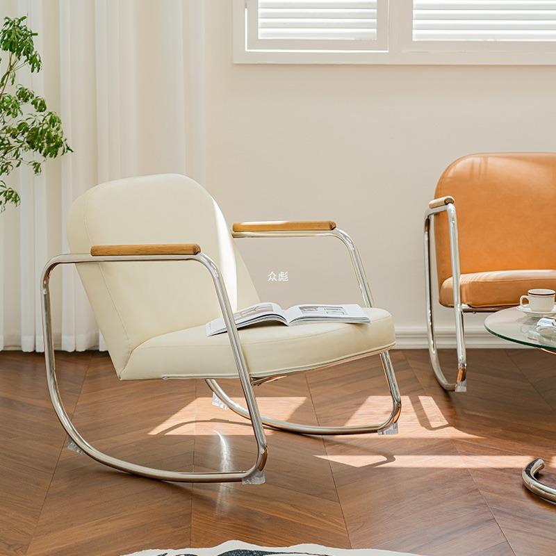 寝室リビングルームステンレス鋼怠惰なリクライニングチェアレジャーバルコニーシングルソファロッキングチェアインターネット有名人イン中古クリエイティブzb