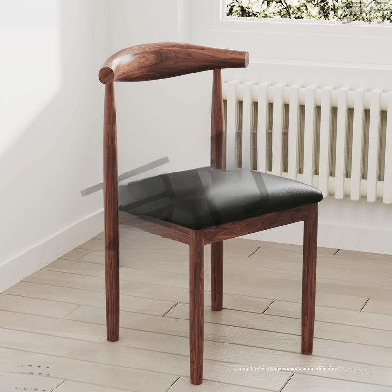 木目調の快適な模造商業用鉄製ホーンチェアレンタルルーム座りがちなダイニングチェアスツール背もたれホームレストランダイニングテーブルと椅子