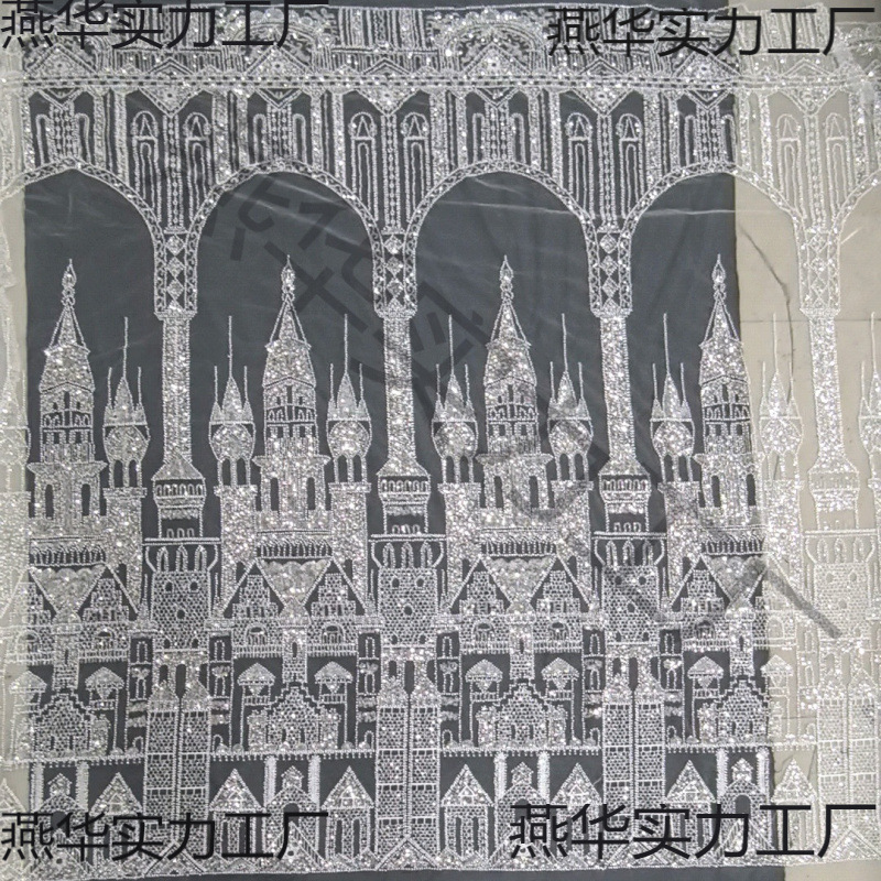 オレンジ DIY ホワイトスパンコール刺繍立体城レース生地生地装飾絵画玄関絵画背景布カーテン