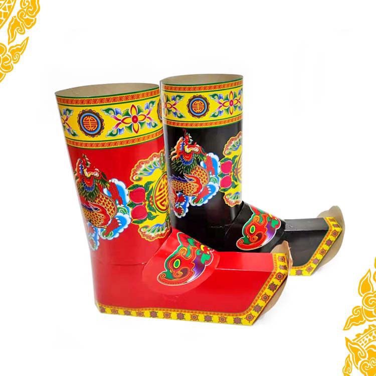 潮山手作り用品紙ブーツ手作り紙製品ブーツ龍と鳳凰のブーツ半完成黒段ボール紙靴