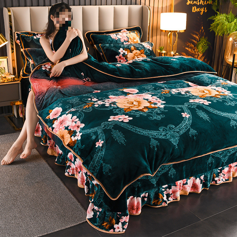 厚手の暖かいフランネル4点セット、両面ベルベットゴールデンミンクベルベットキルトカバー、コーラルベルベット3点セット、ベッドスカート寝具