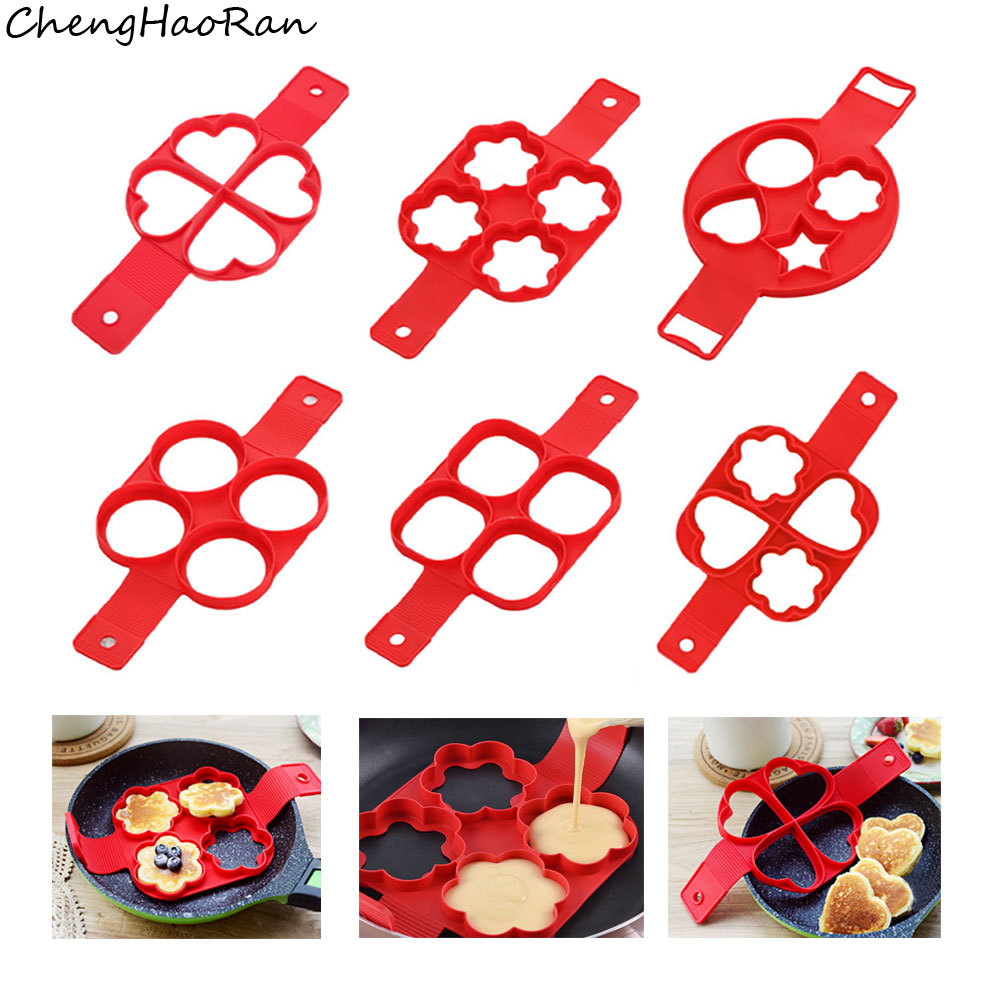 DIY シリコーンオムレツメーカー家庭用ノンスティックパン 4 穴パンケーキフライパンポーチドエッグケーキベーキングツール