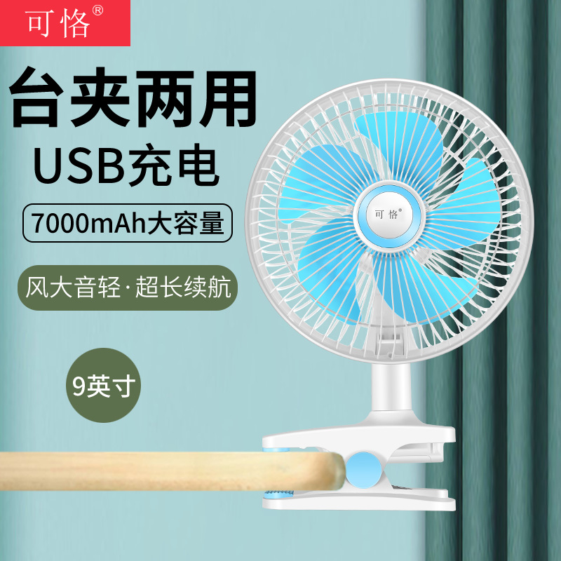 9inchUSB充電式小型扇風機建設現場学生寮屋外兼用静音強風デスクトップテーブルクリップファン