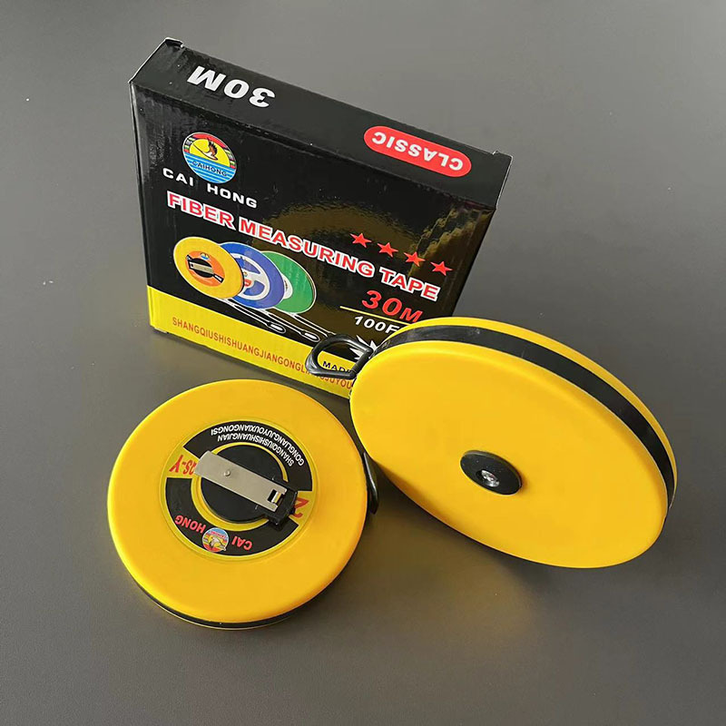 卸売り繊維皮尺20m 30メートル50m 100m手提げプラスチック紅架尺手揺挿し式PVC鋼架