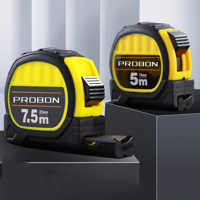国境を越えた売れ筋の高精度落下防止および耐摩耗定規、厚みのあるゴム引きダブルロック巻尺、5メートル、7.5メートル、メートル法スチール巻尺