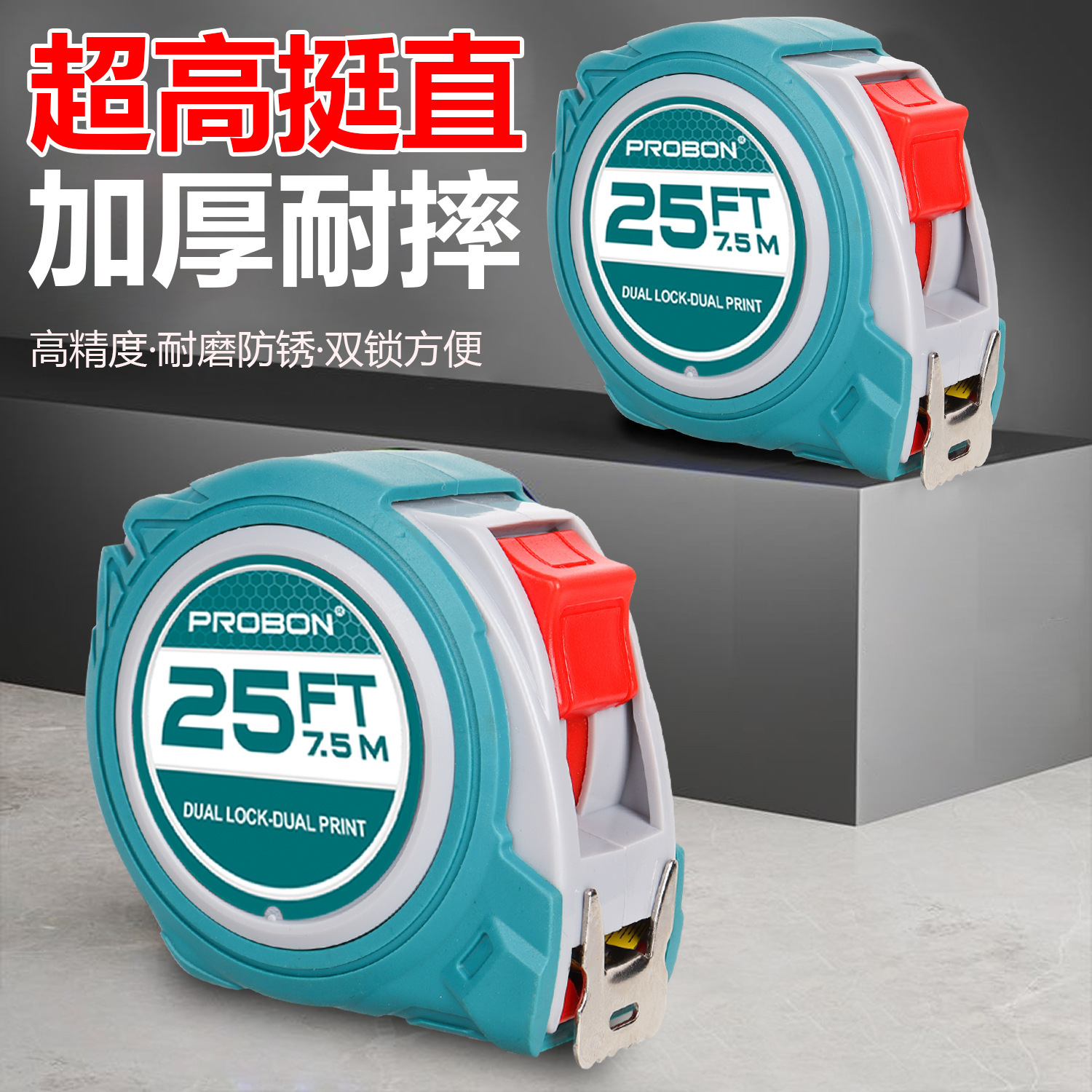 国境を越えた売れ筋の高品質ステンレス鋼ブレーキ巻尺防水、耐摩耗性、防錆 7.5 メートル両面印刷セルフロック巻尺