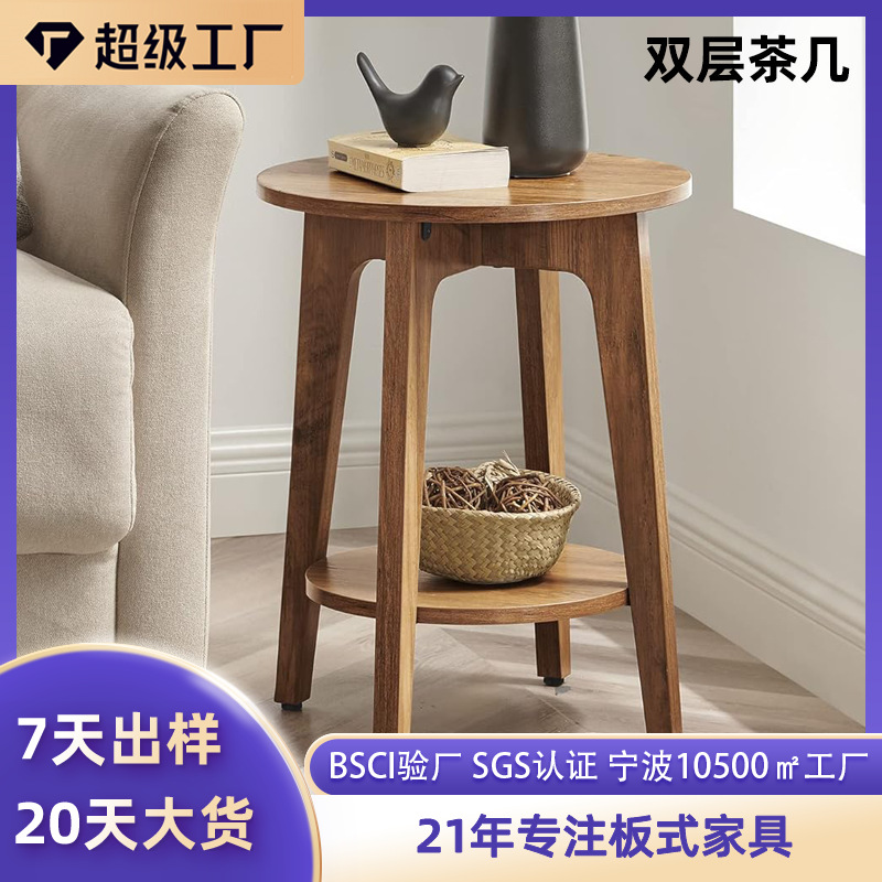 Amazonベストセラー二層ラウンドテーブルシンプルなリビングルームベッドルーム収納サイドテーブル密度ボードコーヒーテーブルパネル家具テーブル