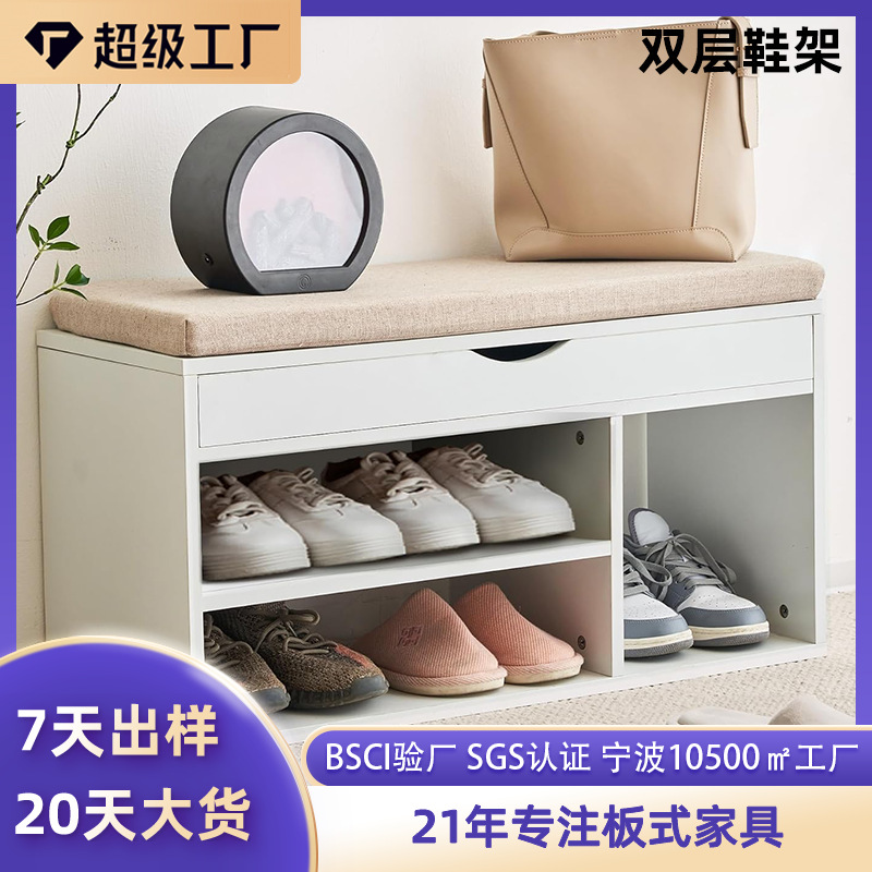 Amazonカスタマイズされたボードシューズラック二層フリップトップ玄関ドア多機能収納スツール一体型キャビネット